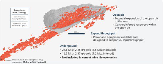 • Greenstone underground resource not included in mine plan provides future opportunity to enhance mill feed with higher-grade underground resources alongside open-pit production